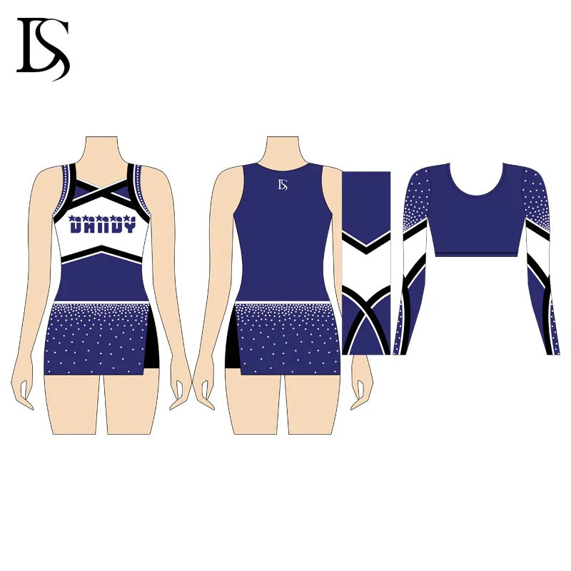 High quality Sublimated Cheer Uniform competition Cheerleading Uniform with diamonds for youth women