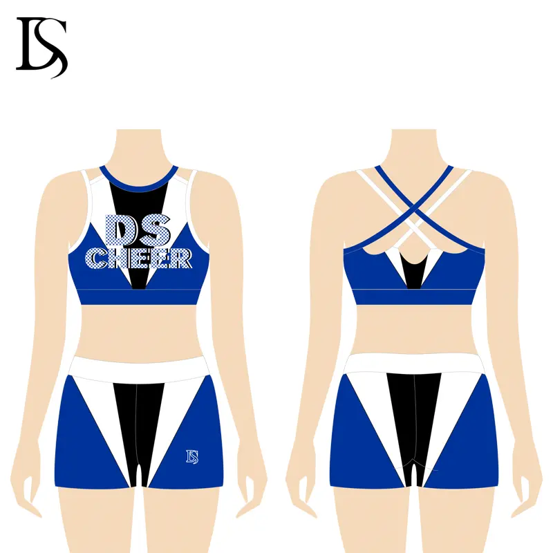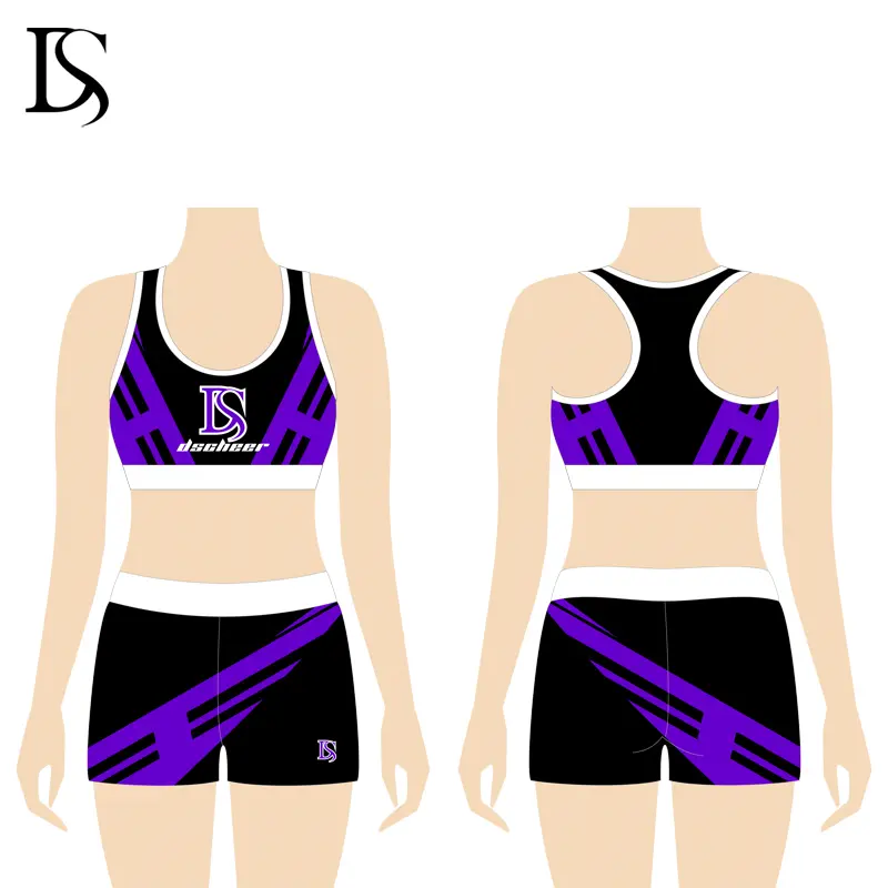 Hot Sale Cheer Practice Wear Sublimated Bra Shorts Training Sets Breathable Spandex Cheerleading Uniform