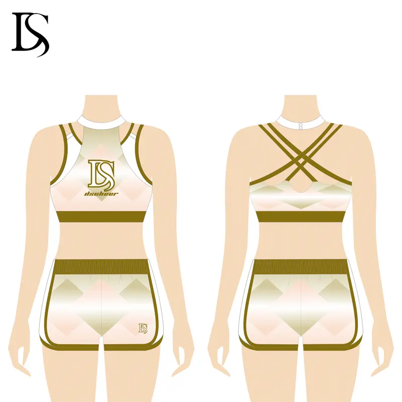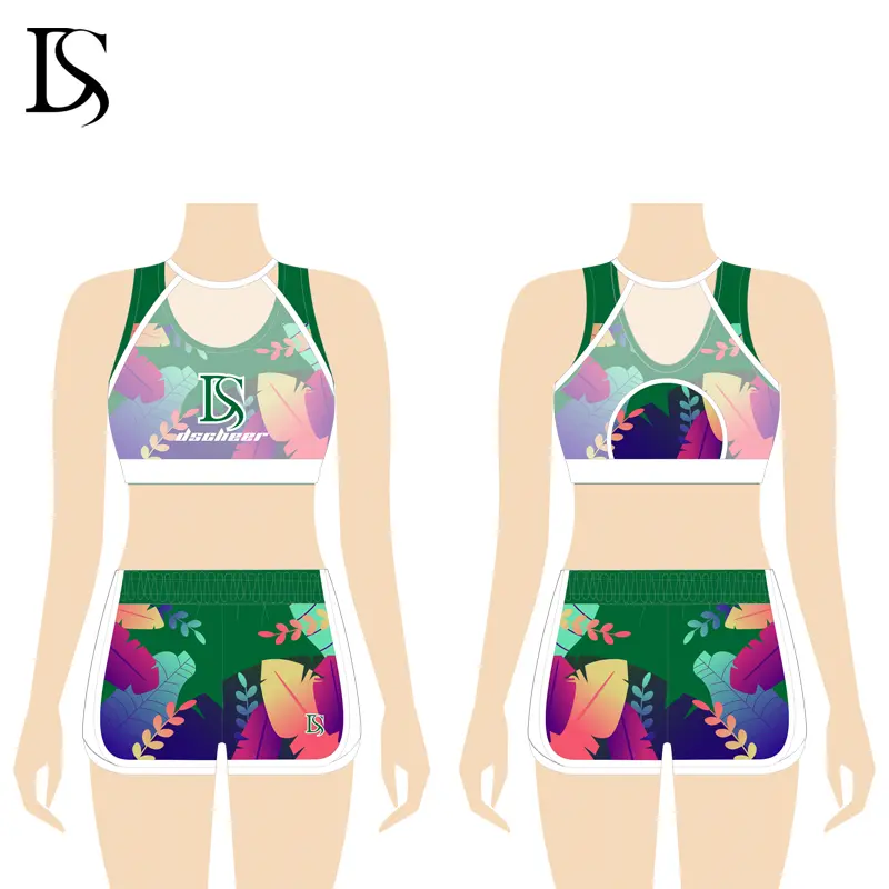 Sublimated Printing Cheer Practice Wear Cheerleader Training Outfit with Bra and Shorts OEM Service for Girls