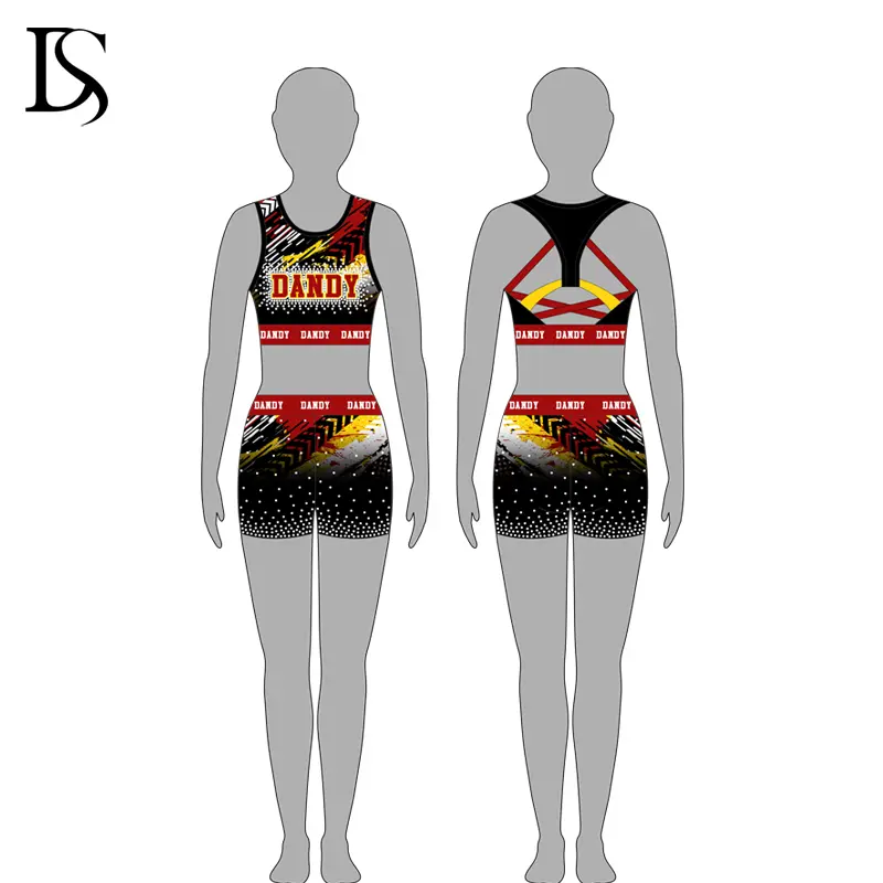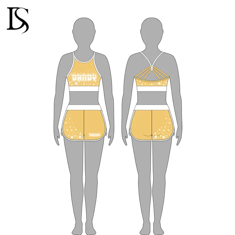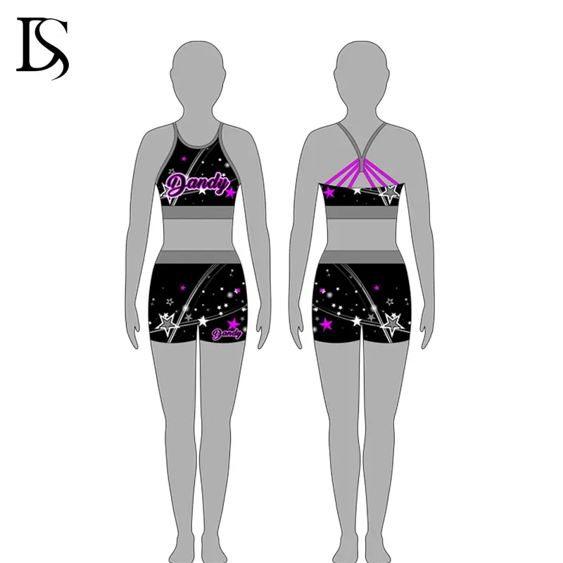 “Custom color, design , fabric , logo process for your cheer practice wear . Low MOQ, professional designer and team service for you .Available sample free provide .