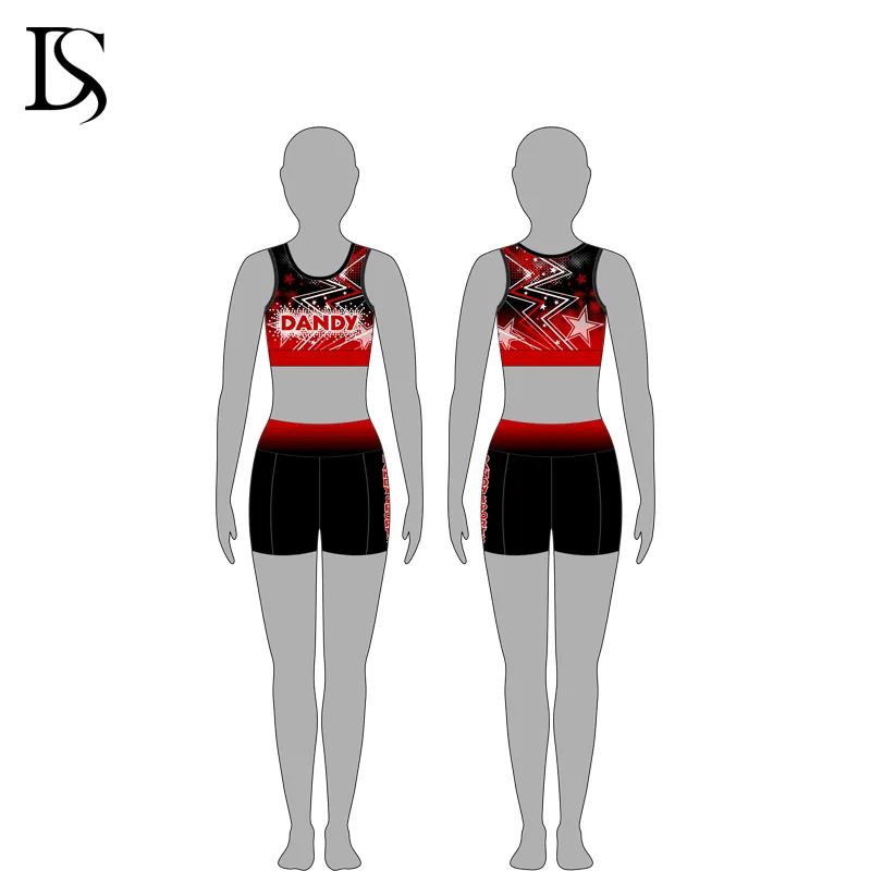 Hot Sale Cheerleading Practice wear Cheer Training Wear Rhinestones Crop Top and Cheerleader Shorts