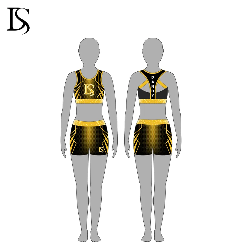 “Custom color, design , fabric , logo process for your cheer practice wear . Low MOQ, professional designer and team service for you .Available sample free provide .