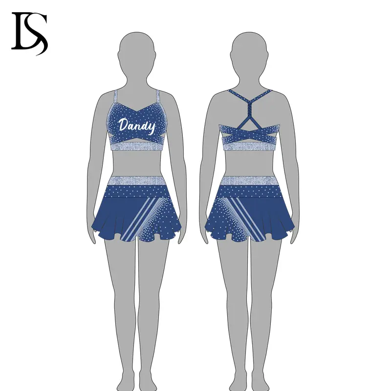 “Custom color, design , fabric , logo process for your cheer practice wear . Low MOQ, professional designer and team service for you .Available sample free provide .