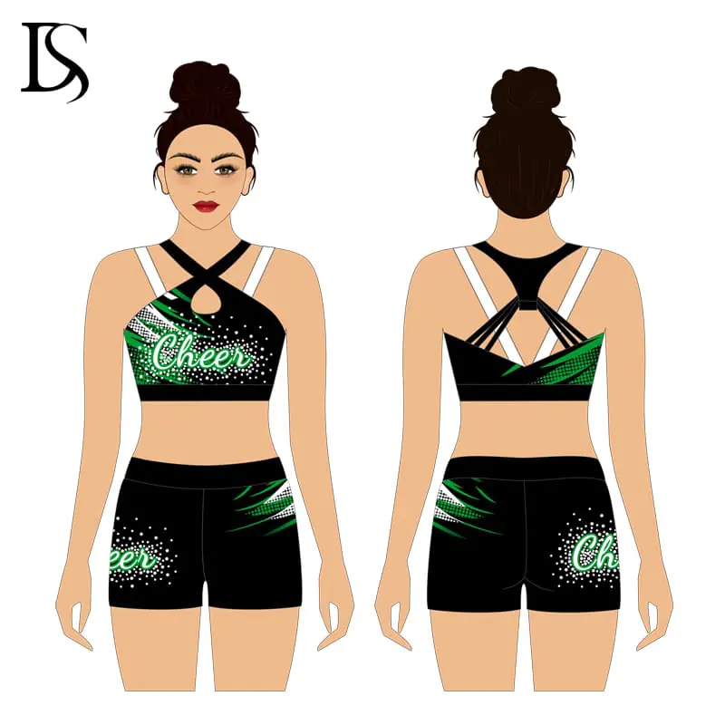 “Custom color, design , fabric , logo process for your cheer practice wear . Low MOQ, professional designer and team service for you .Available sample free provide .