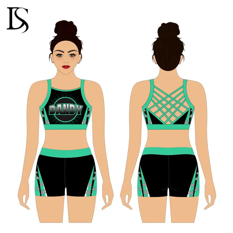 “Custom color, design , fabric , logo process for your cheer practice wear . Low MOQ, professional designer and team service for you .Available sample free provide .