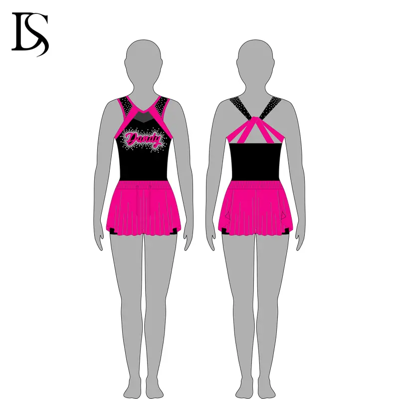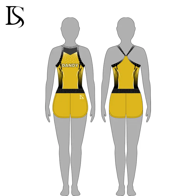 “Custom color, design , fabric , logo process for your cheer practice wear . Low MOQ, professional designer and team service for you .Available sample free provide .