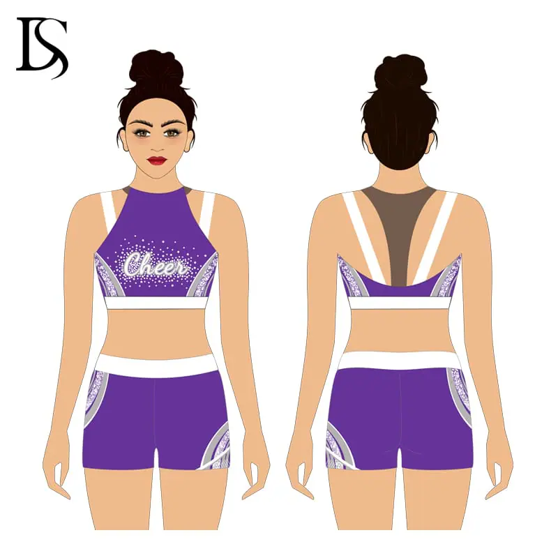“Custom color, design , fabric , logo process for your cheer practice wear . Low MOQ, professional designer and team service for you .Available sample free provide .