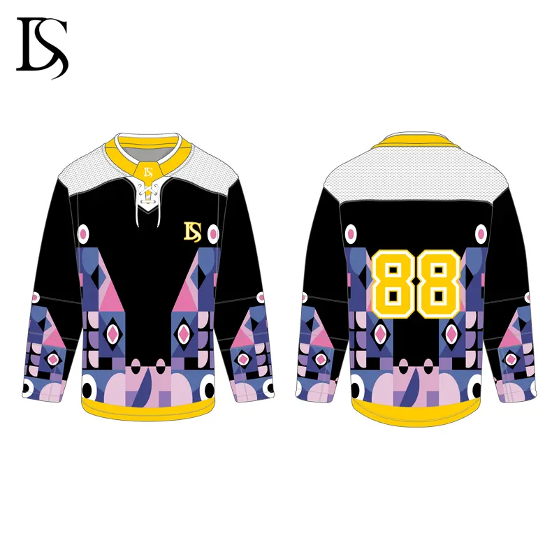 High quanlity customized sublimated Fashion school Ice Hockey Jerseys set with strips